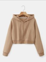 Elevate your casual wardrobe with this chic cropped hoodie, perfect for layering and everyday wear. Designed in a warm light brown tone, it features a front zipper, adjustable drawstring hood, and ribbed cuffs and hem for a snug, flattering fit. – 👚 Fit: Cropped silhouette with a relaxed feel – 🎨 Color: Soft light brown for versatile styling – 🧵 Details: Zip-up front, drawstring hood, ribbed edges – 💃 Style: Feminine, cozy, and effortlessly cool – 🌤️ Mood: Minimalist, laid-back, and ready for any season Pair it with high-waisted jeans, leggings, or joggers for a look that’s both comfy and confident.